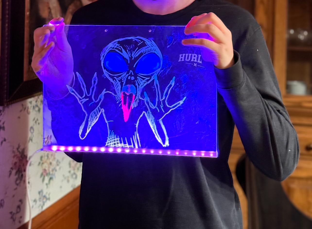 Yes! The acrylic board has smooth edges, and the LED lights stay cool to the touch. The pens are non-toxic and kid-friendly.