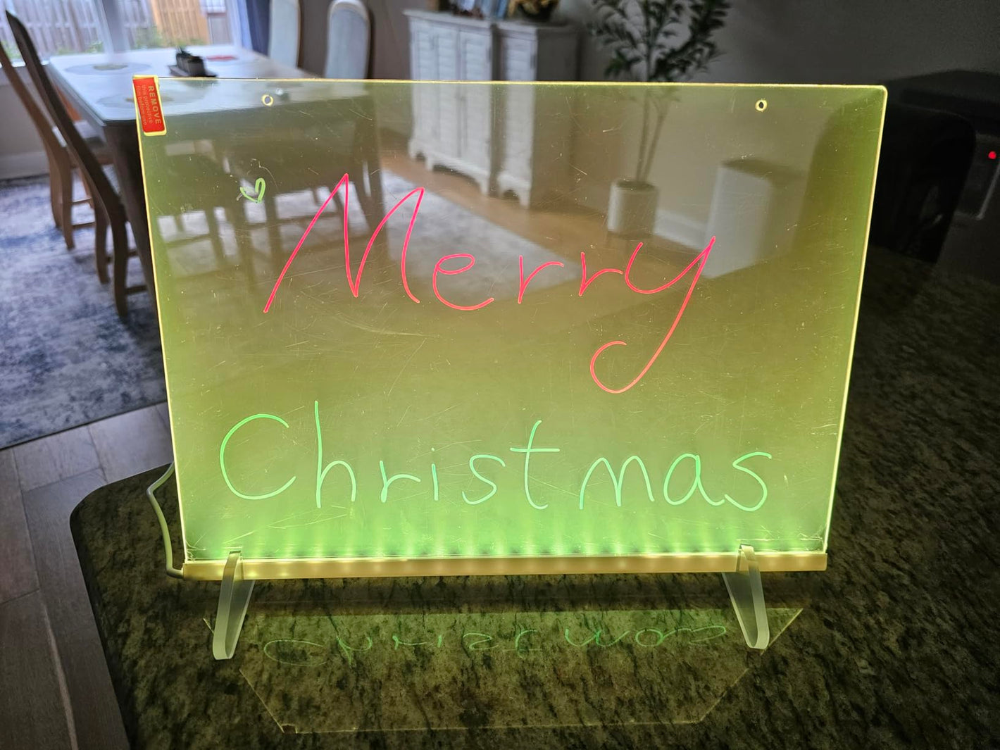 Use the included microfiber cloth or any soft cloth. The neon ink wipes away easily without leaving marks.