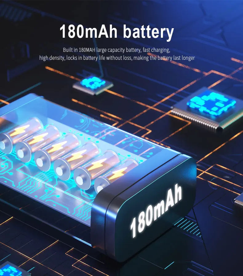 A full charge lasts several hours depending on usage. Simply plug it in with the included cable to recharge.