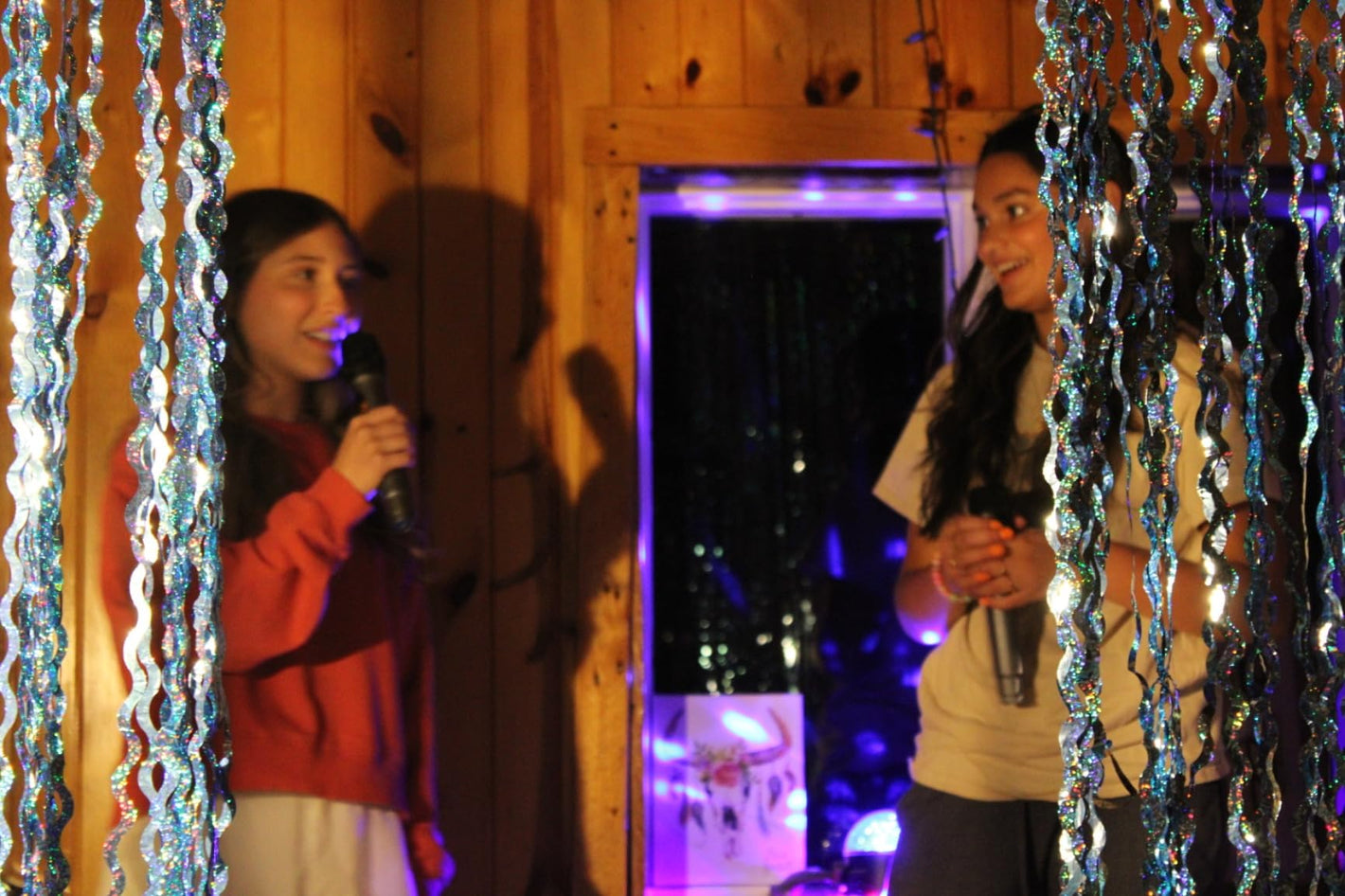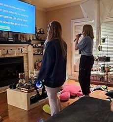 Yes! The dual wireless microphones are designed for duets, battles, and group fun — both run simultaneously with no lag.