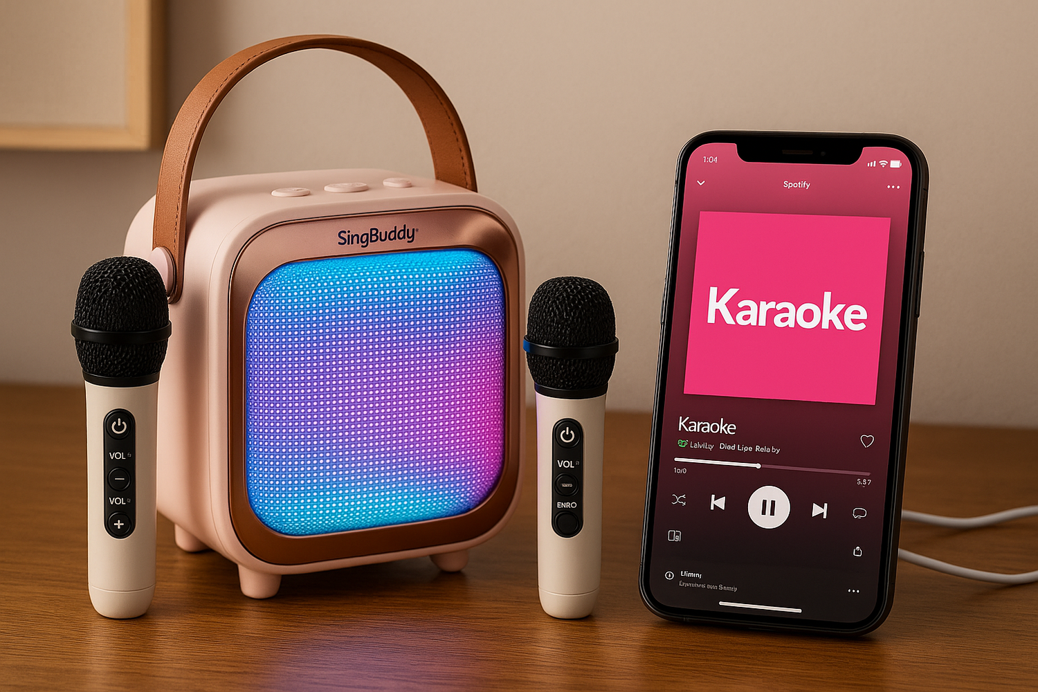 Yes! SingBuddy is designed to fill living rooms, backyards, and birthday spaces with clear, powerful sound. It’s surprisingly loud for such a compact speaker.